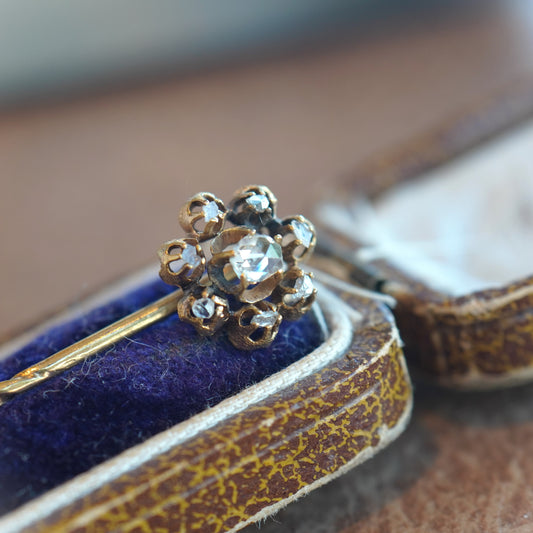 中央にはローズカットダイヤモンド、周りにはちいさなダイヤモンド。