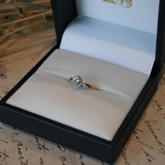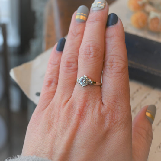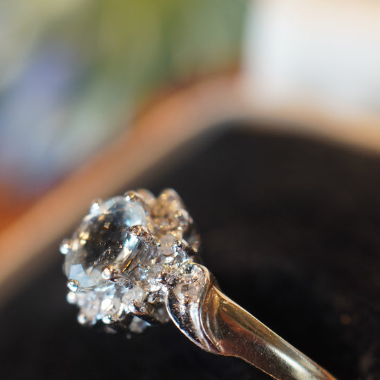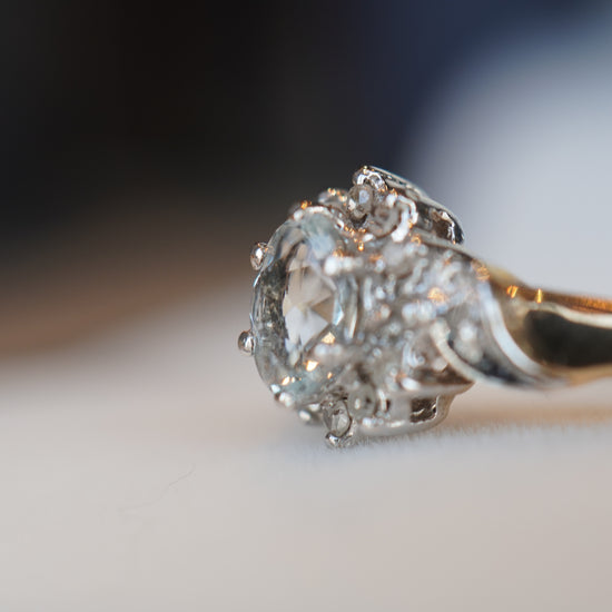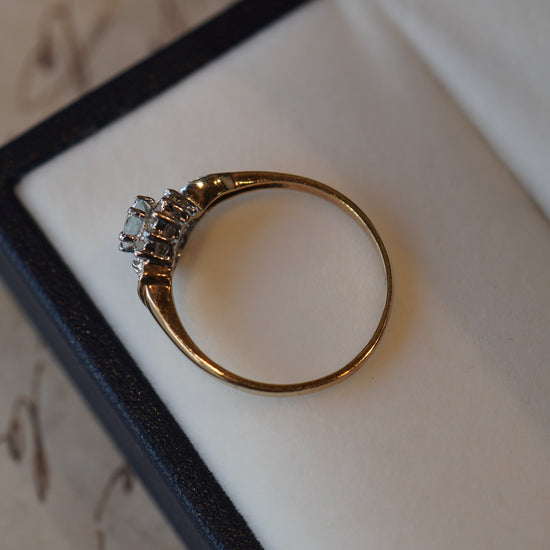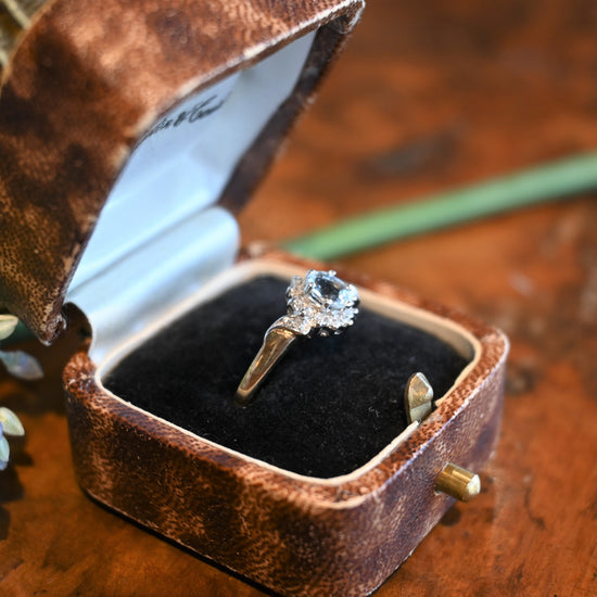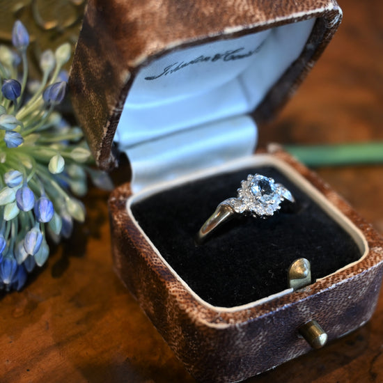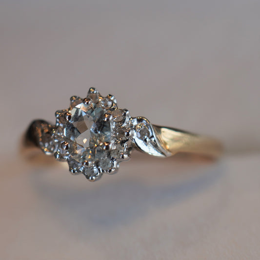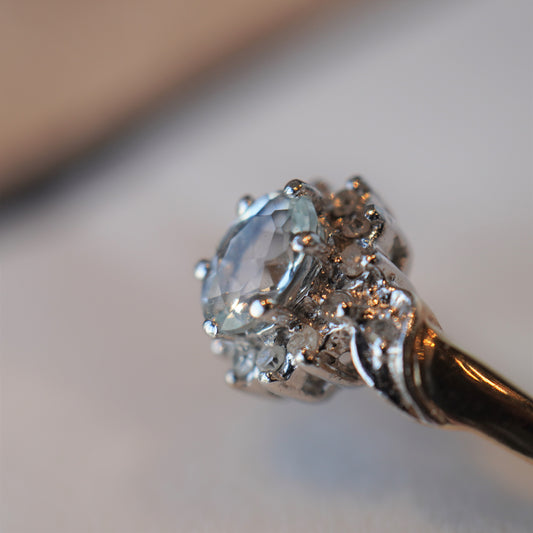 イギリスより入荷した9金、アクアマリンリング。推定1970年代のもの。