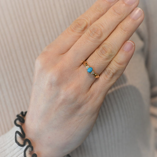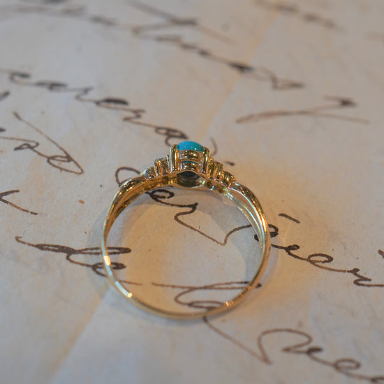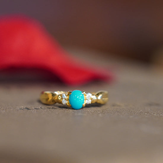 ゴールドとターコイズの組み合わせはとても落ち着いた印象。