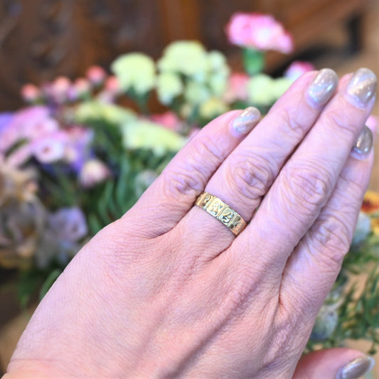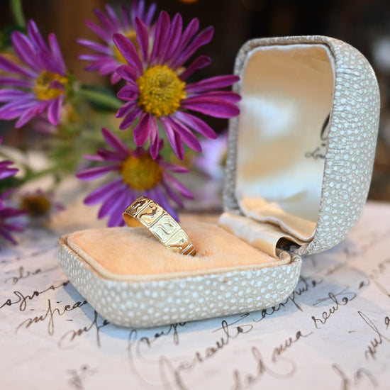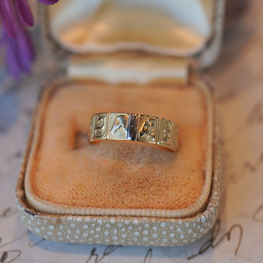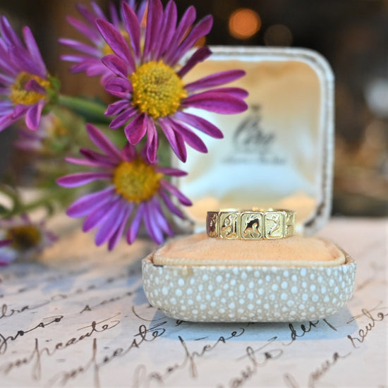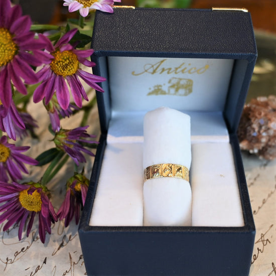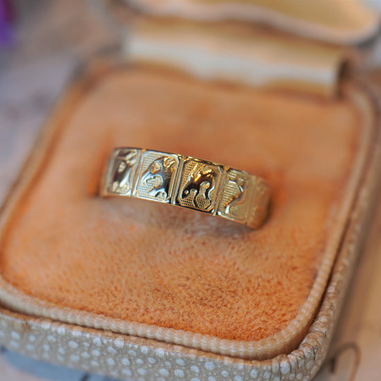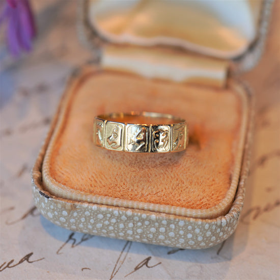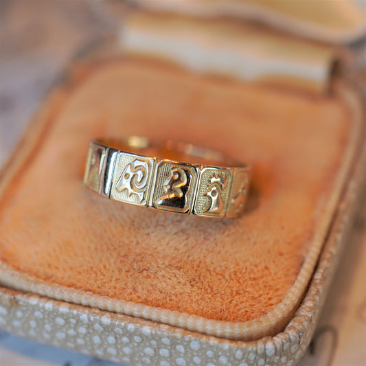 12支が彫られたユニークな彫りリング。