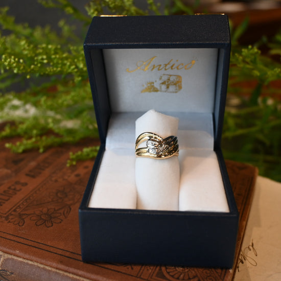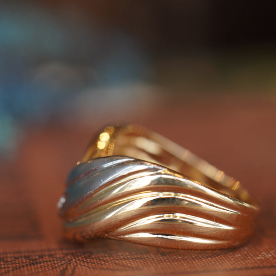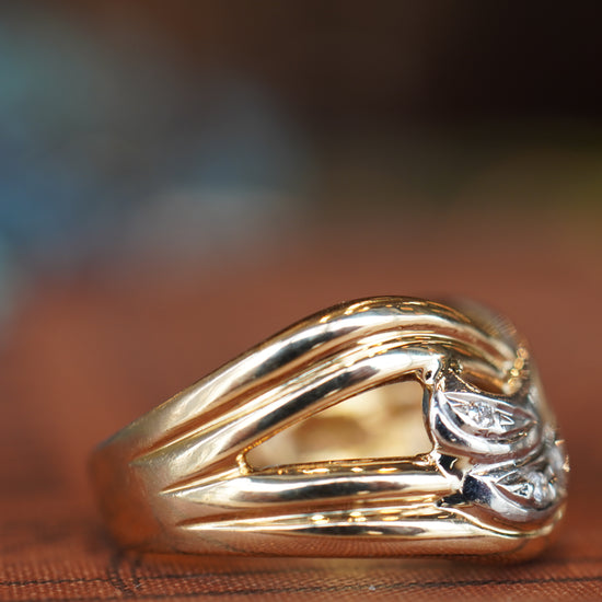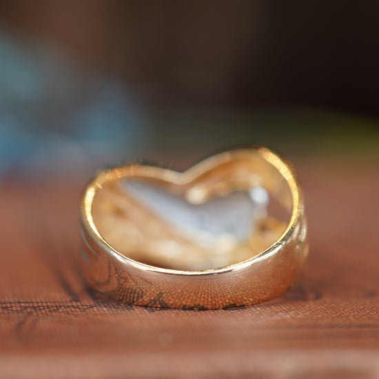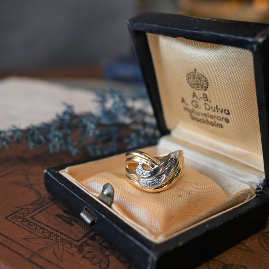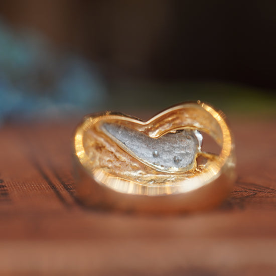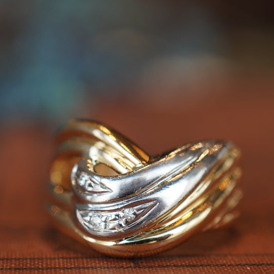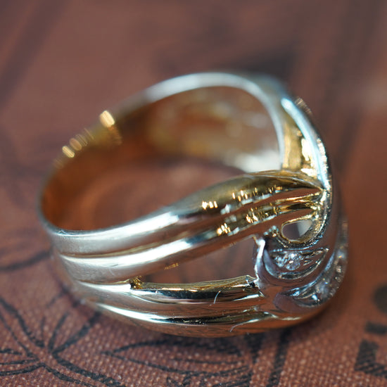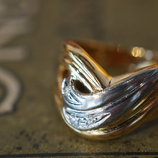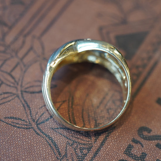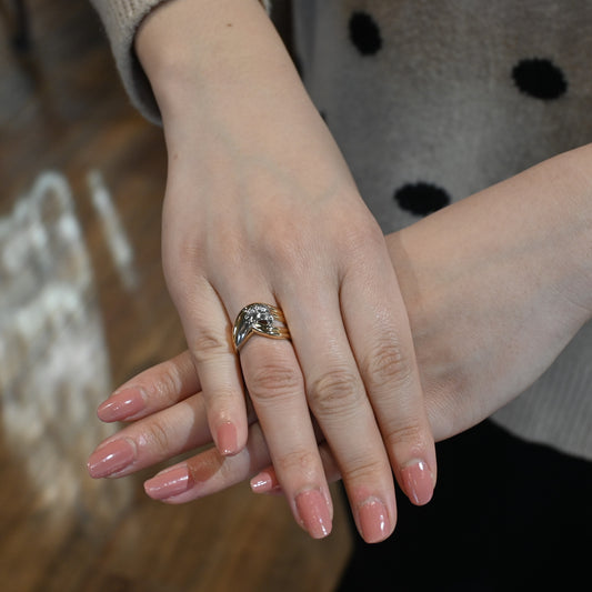 幅広にデザインされたリング。ダイヤモンドがアクセントに。