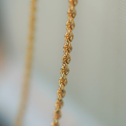 細いロープがねじれて編まれているかのようなデザインチェーン。