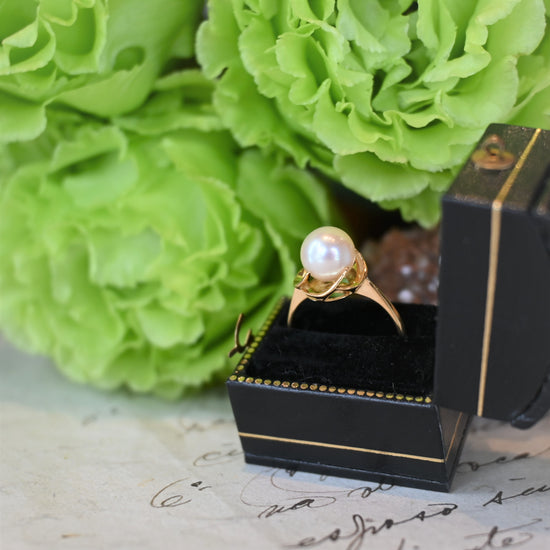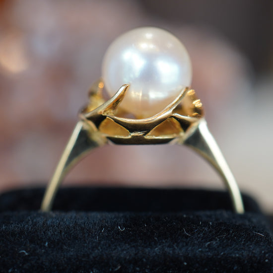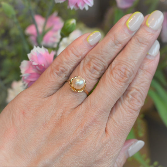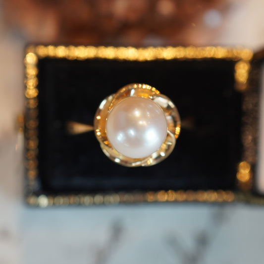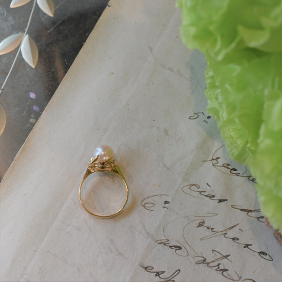 直径約8㎜のピンクかかった可愛らしいパールリング。