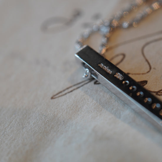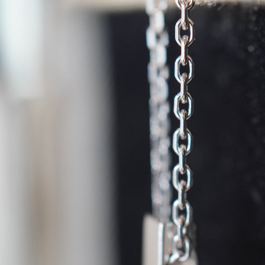 4℃の系列ブランドだった RUGIADA のホワイトゴールド ダイヤモンドバーネックレス。