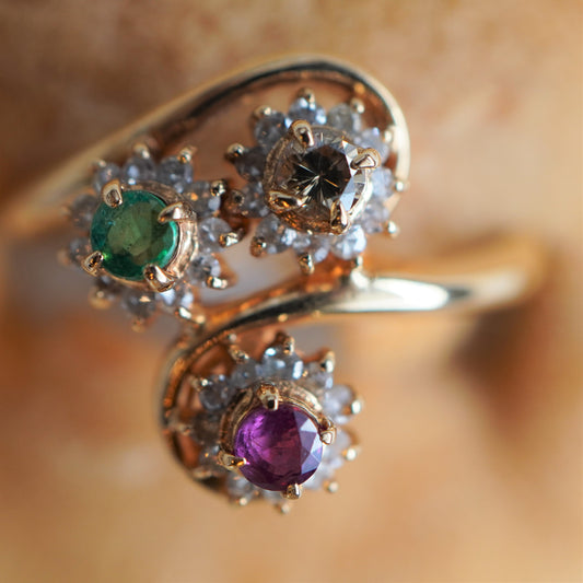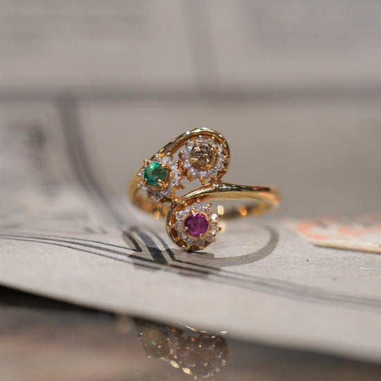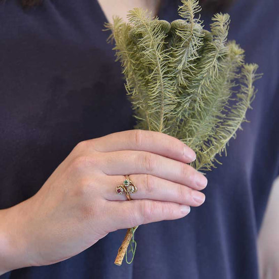 大輪のお花が咲いたようなカラフルでユニークなリングです。