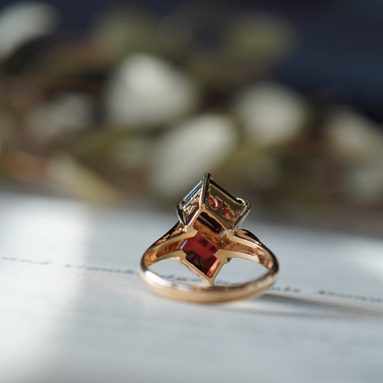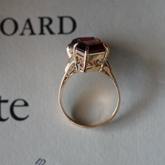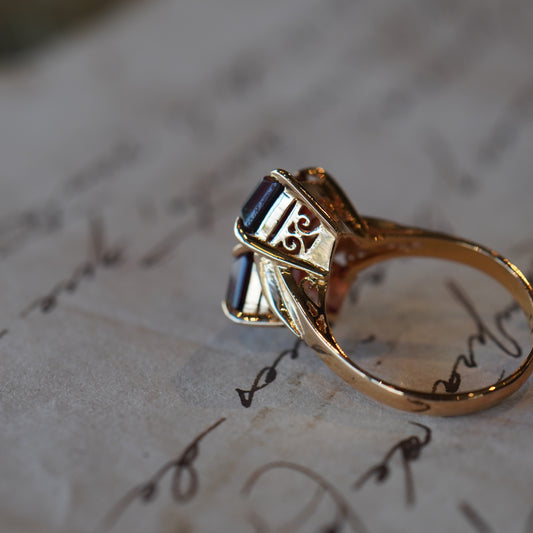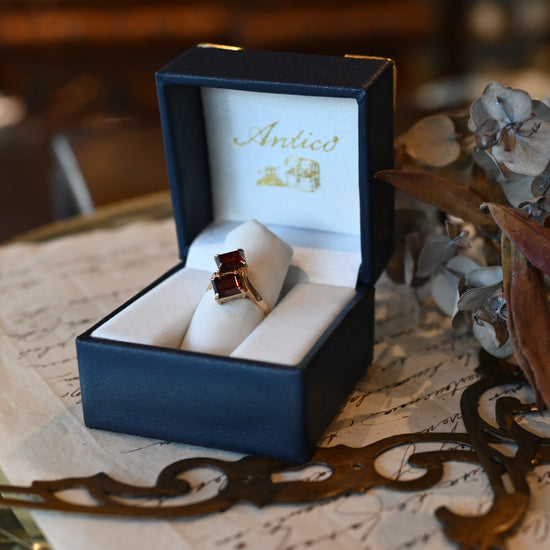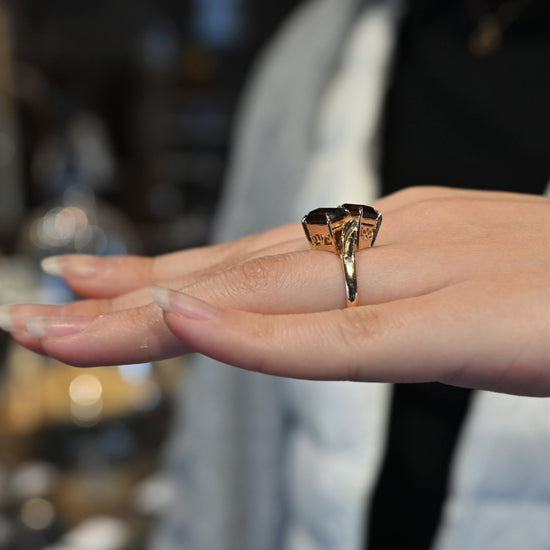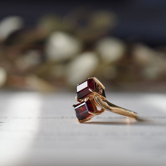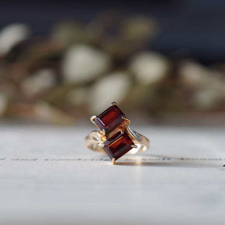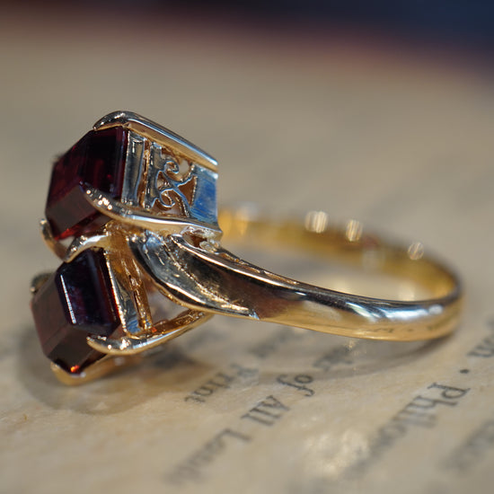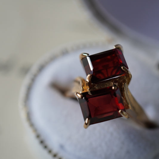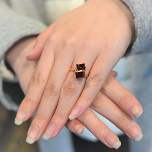 同じ大きさのガーネットが2個並んだ華やかなリング。
