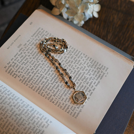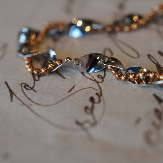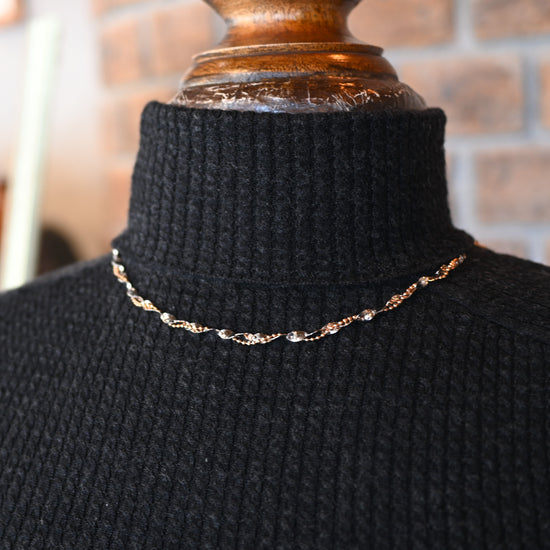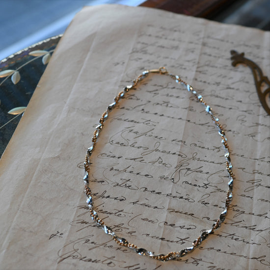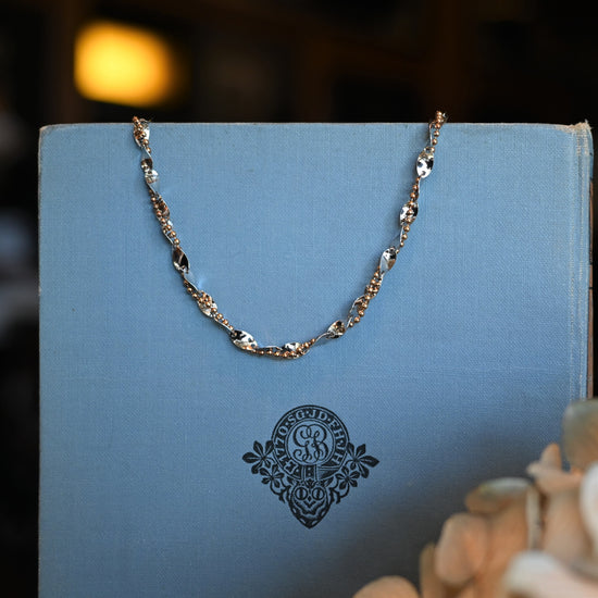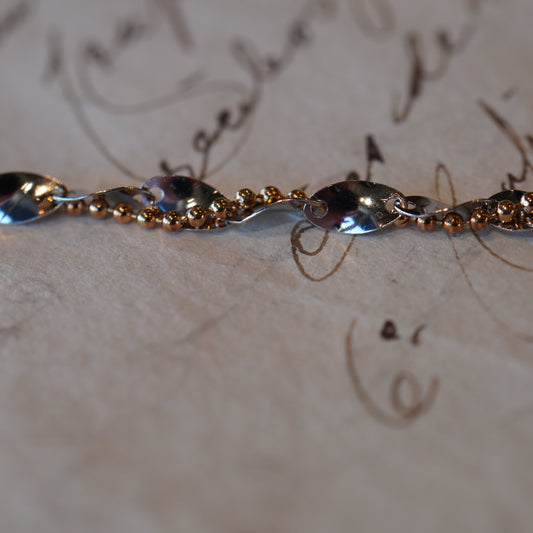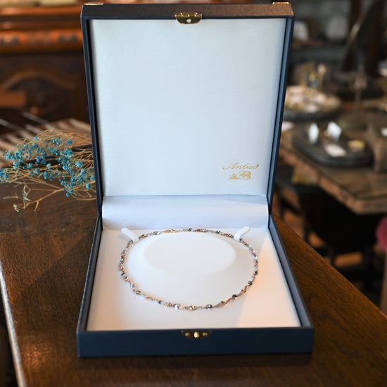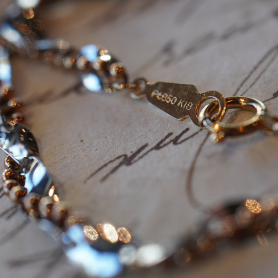 K18 ボールチェーンとプラチナプレートが個性的なネックレス。