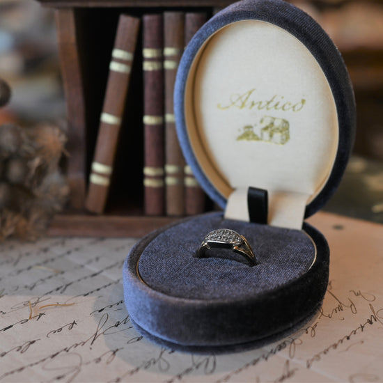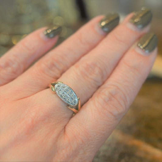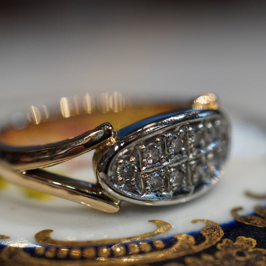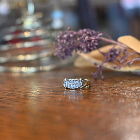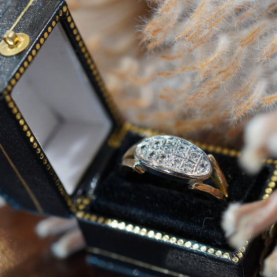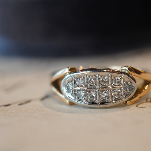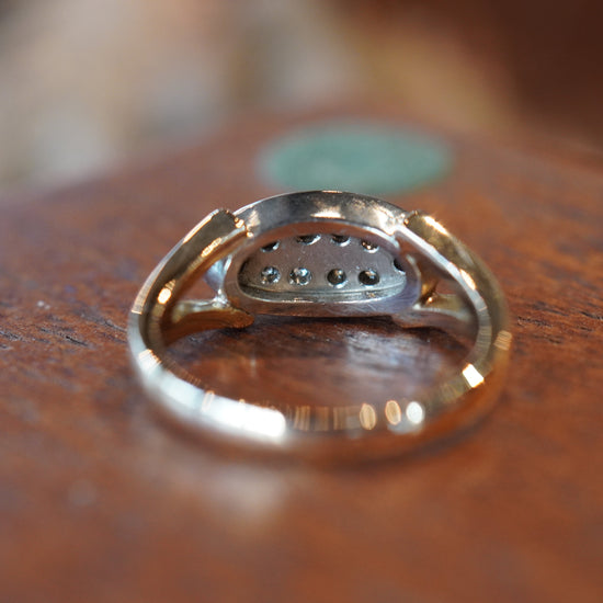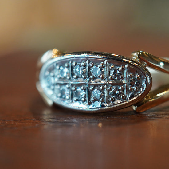 楕円状のフェイスに留められた10石のダイヤモンド。