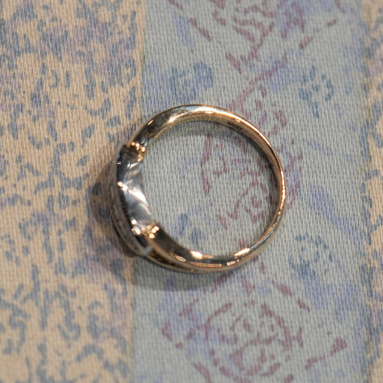 レトロなデザインの割り腕に支えられた柔らかい印象のコンビリングです。