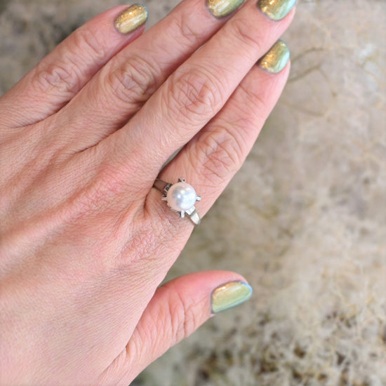 シンプルなプラチナパールリング。