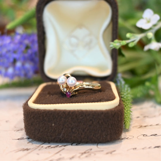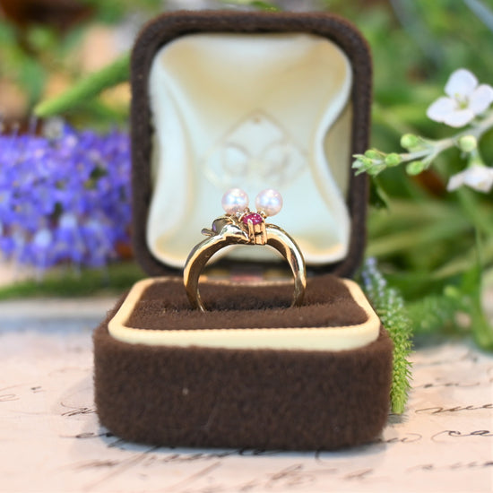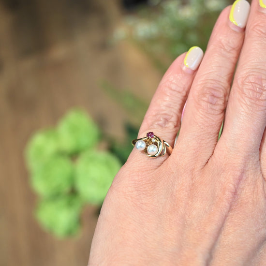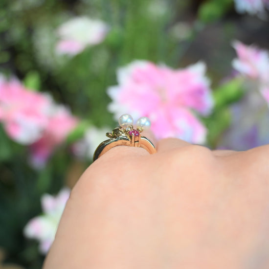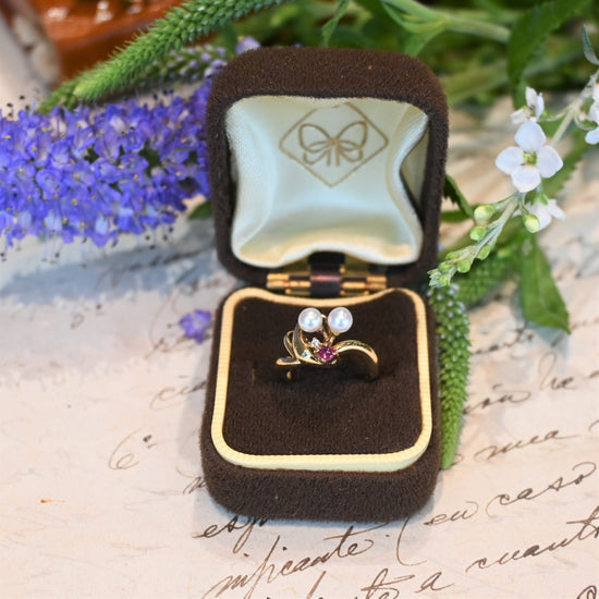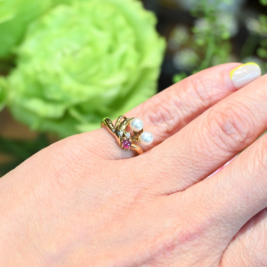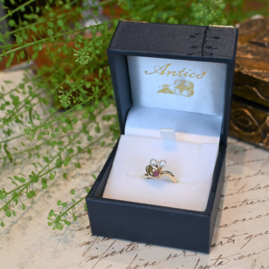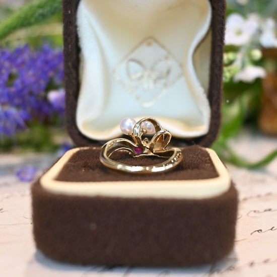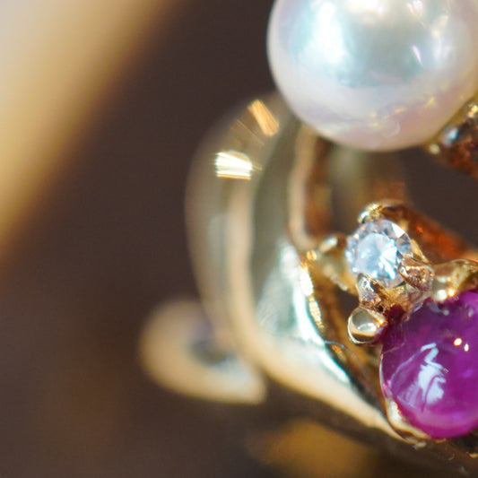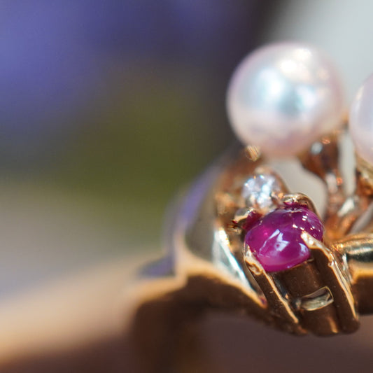 0.01ctのダイヤモンドと赤いルビーが印象的なリング。