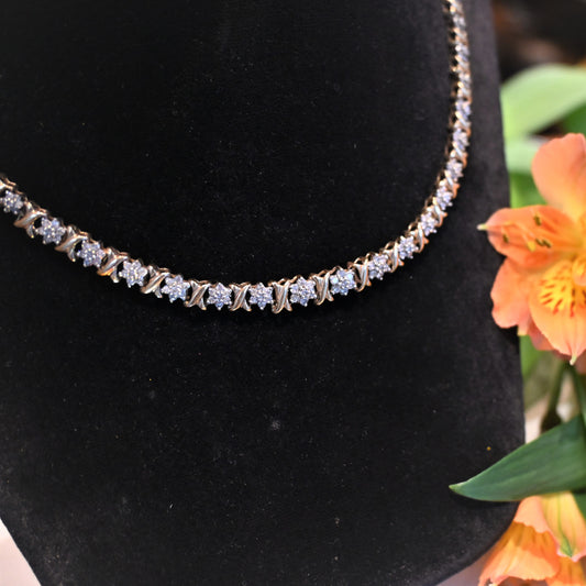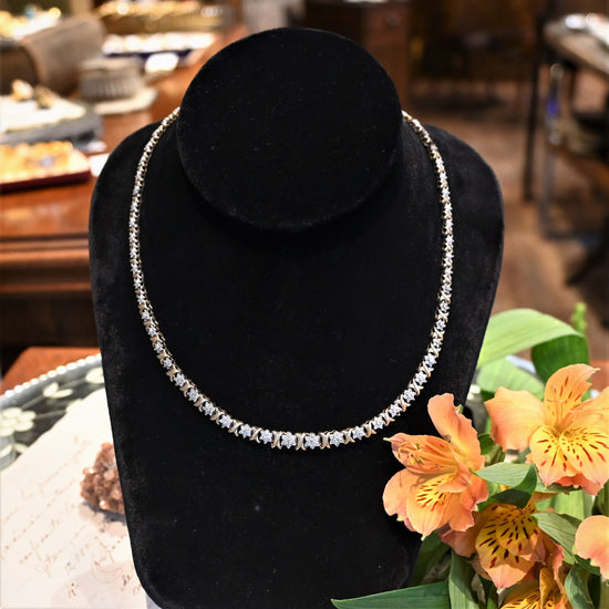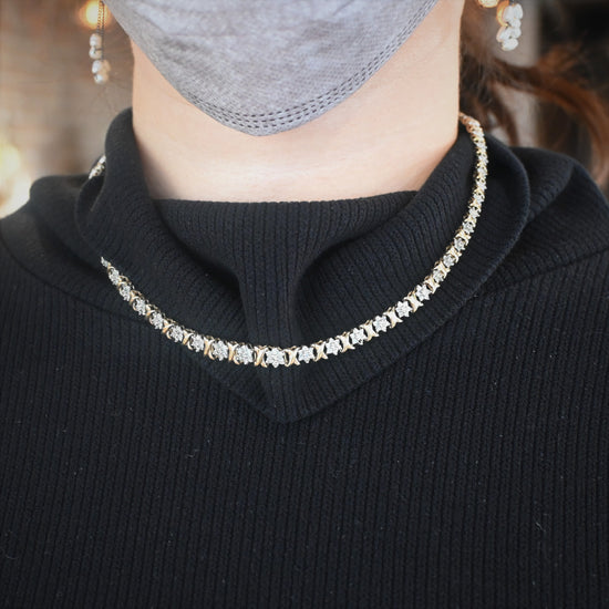 3種類のパーツが華やかなネックレス。