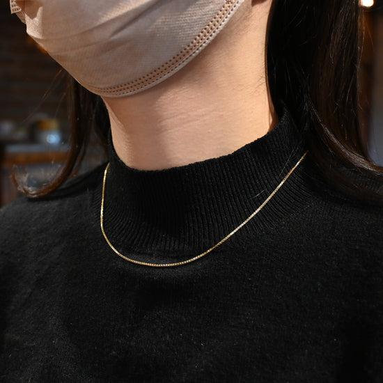 細かな資格のパーツが交互に組み合わされたベネチアンチェーン。