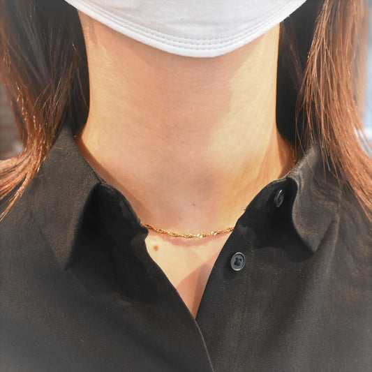 煌めきのある スクリューネックレス