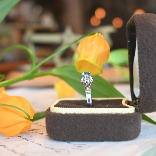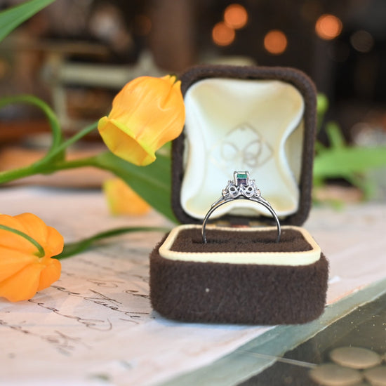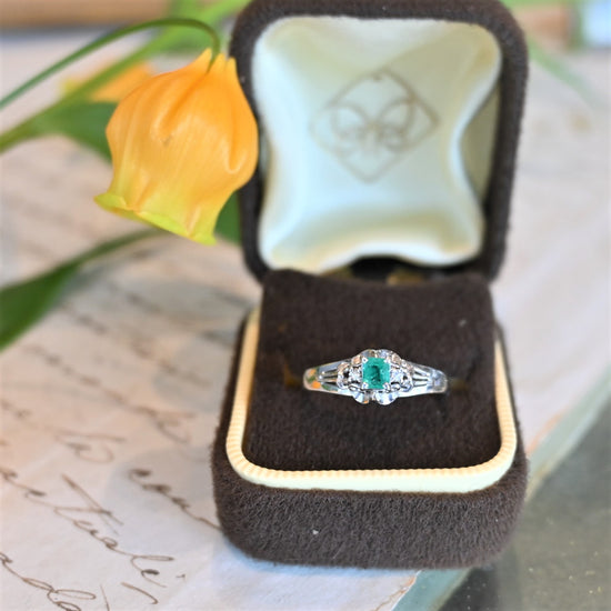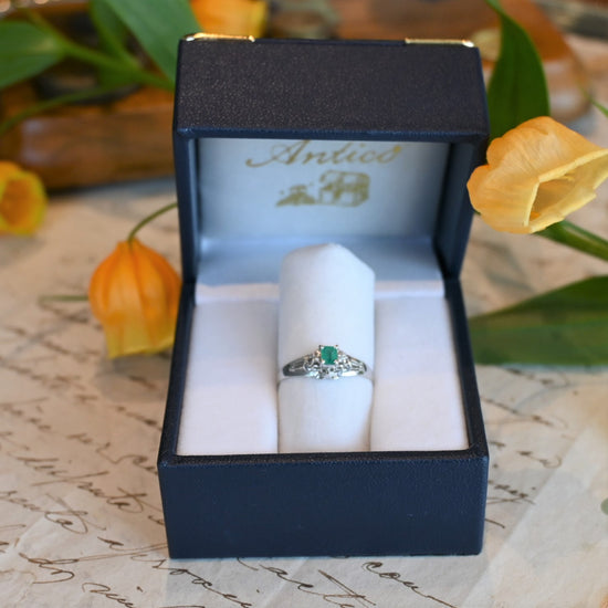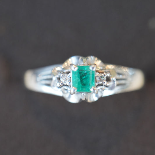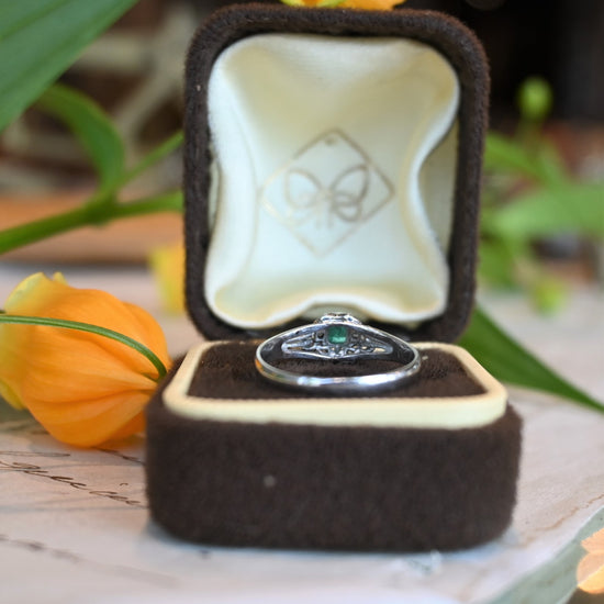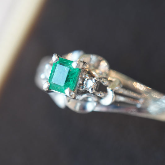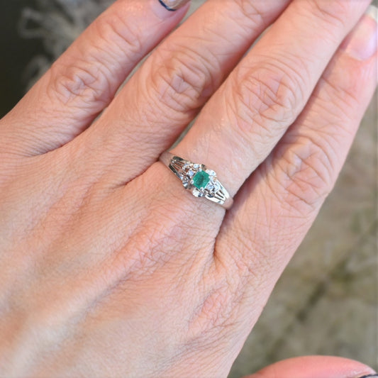 エメラルド0.20ct、ダイヤモンド0.02ctプラチナリング。