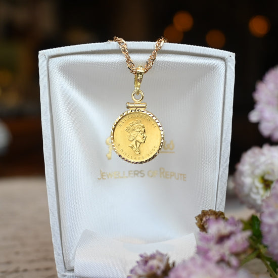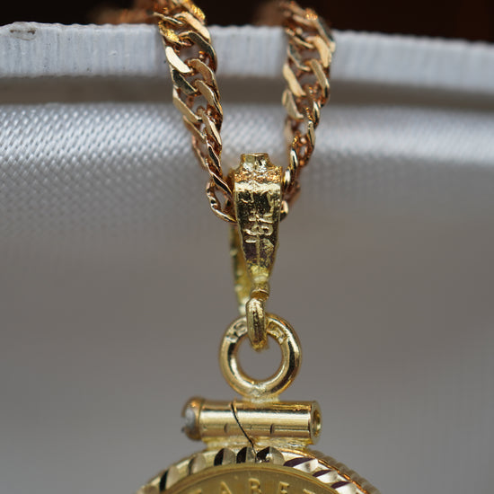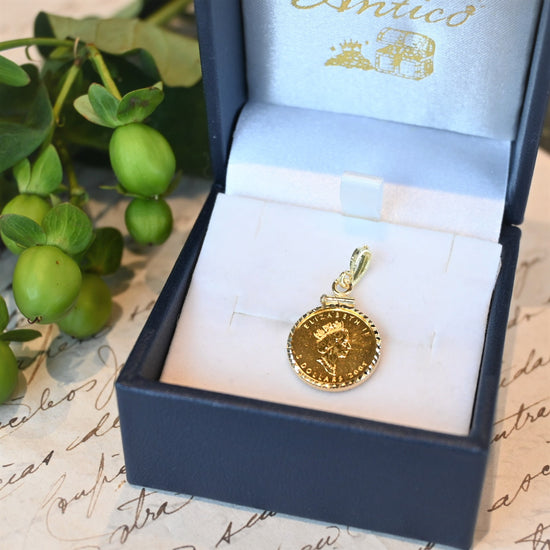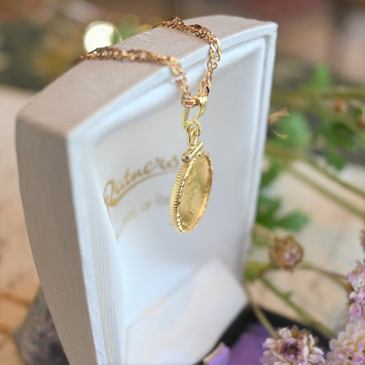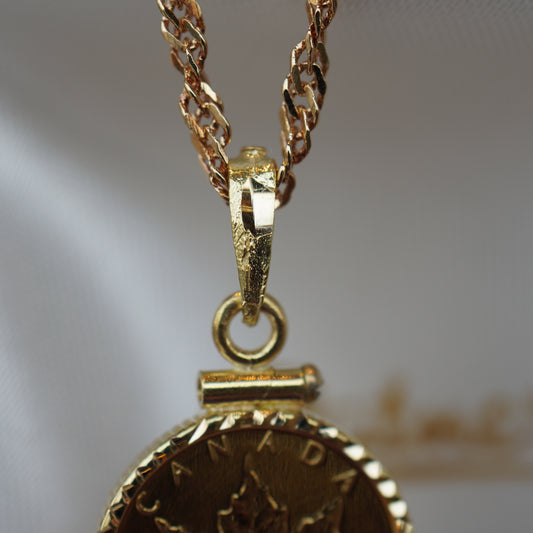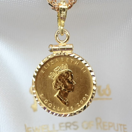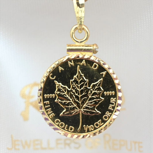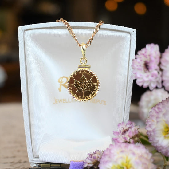 2001年製、1/10ozメープルリーフコインを可憐なトップに。