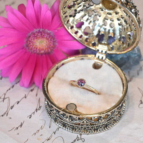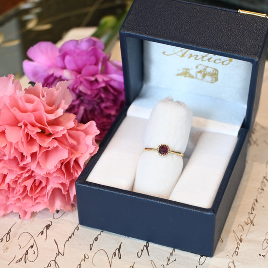 直径約3.5㎜のガーネットがシンプルなリング。