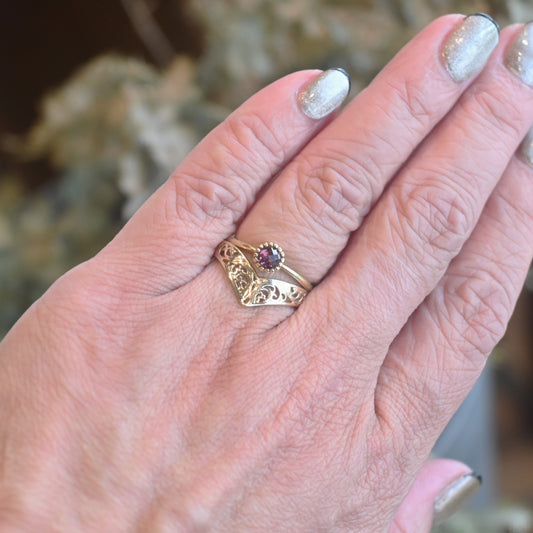 デザインカットされたガーネット リング